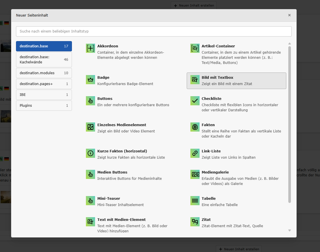 - Element "Bild mit Textbox" auswählen