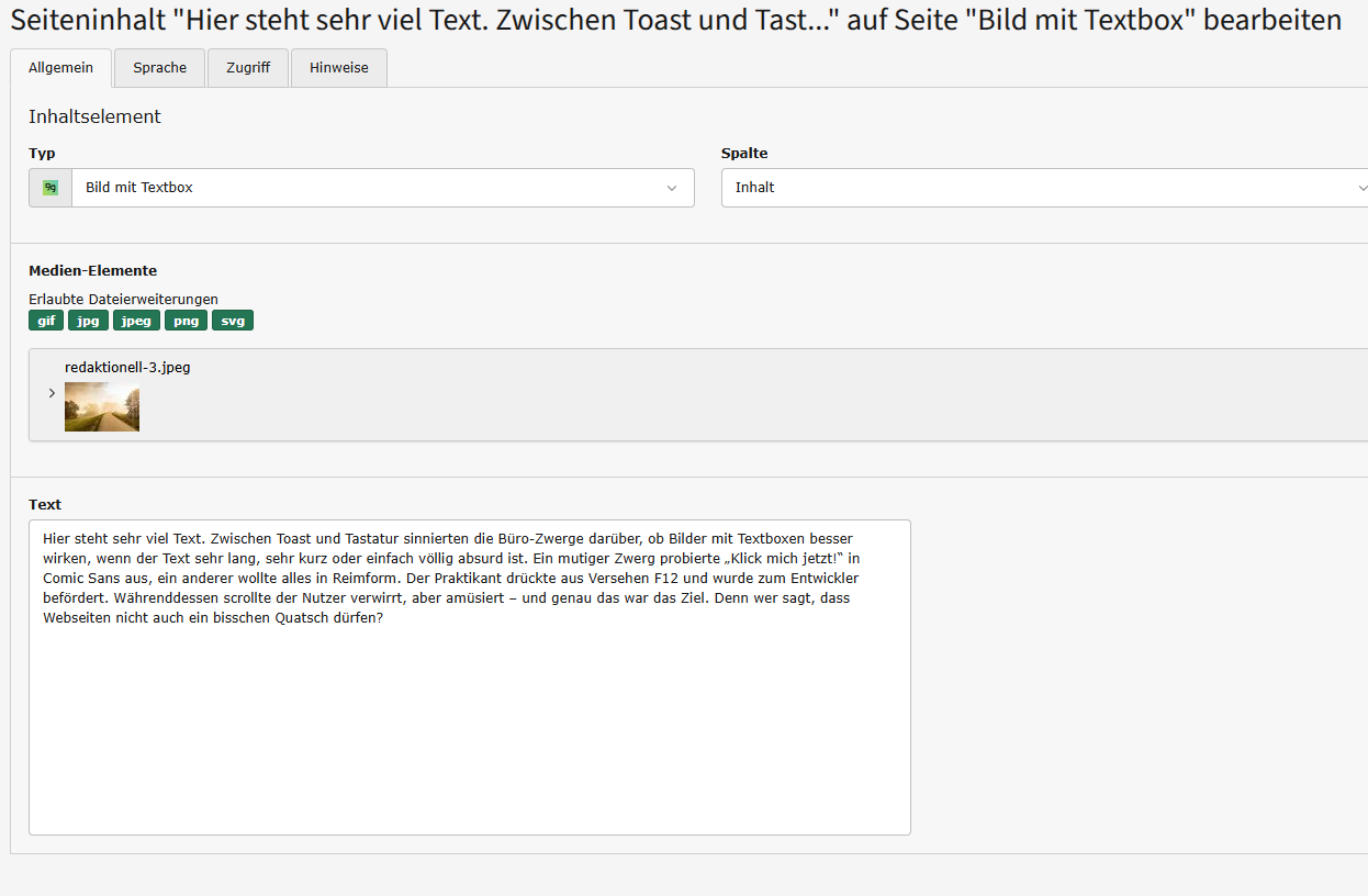 - das Bild und den Text pflegen