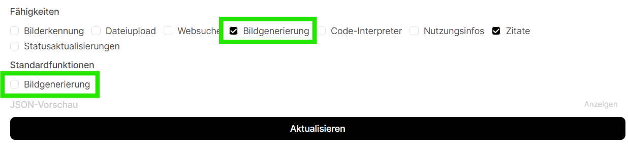 Grundsätzlich gilt: Die Fähigkeit zur Bildgenerierung muss in den Modelleinstellungen aktiviert sein.