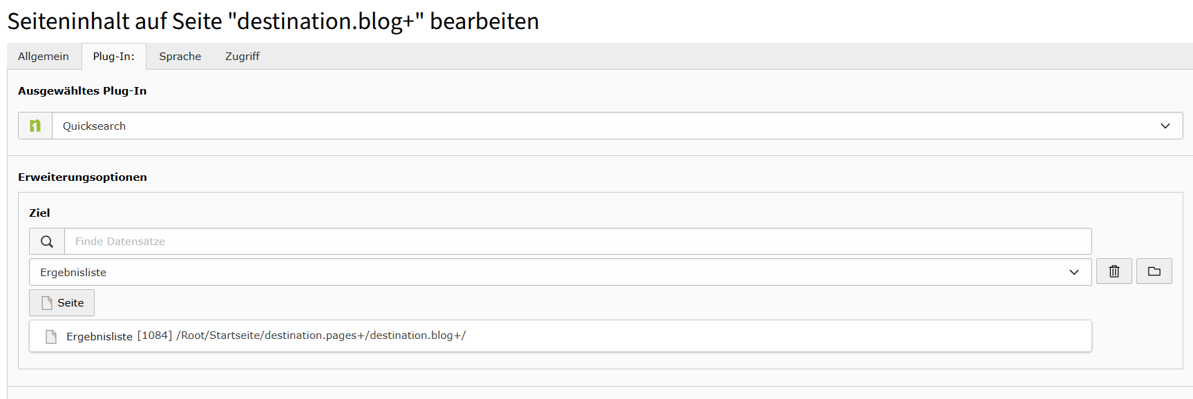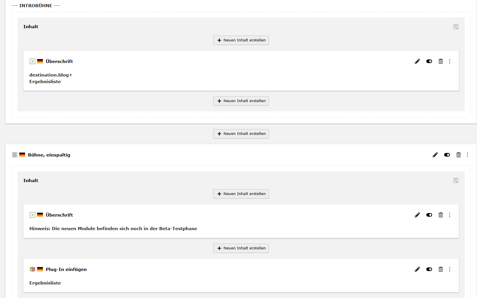 Für die Ausgabe der erstellten Blogartikel benötigen wir nun den klassischen Plusmodul Dreiklang aus Galerie/Karte, Quicksearch und Ergebnisseite.