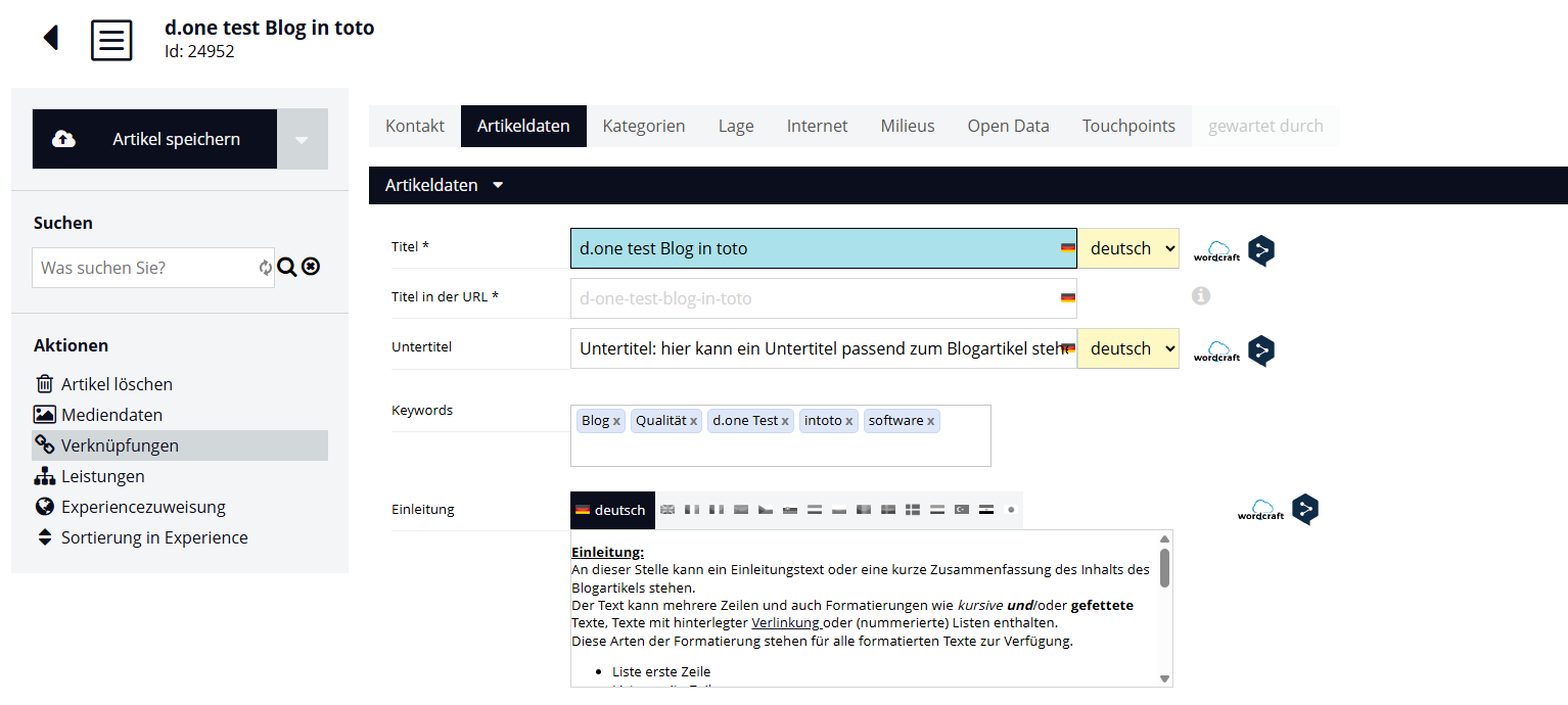 Verknüpfungen für den gesamten Artikel können wie gewohnt über den Bereich Verknüpfungen links im Pflegemenü ergänzt werden.