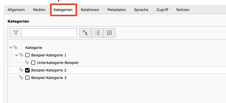 Hier kannst du Kategorien anwählen, mithilfe derer später in der Ausgabe gefiltert werden kann.