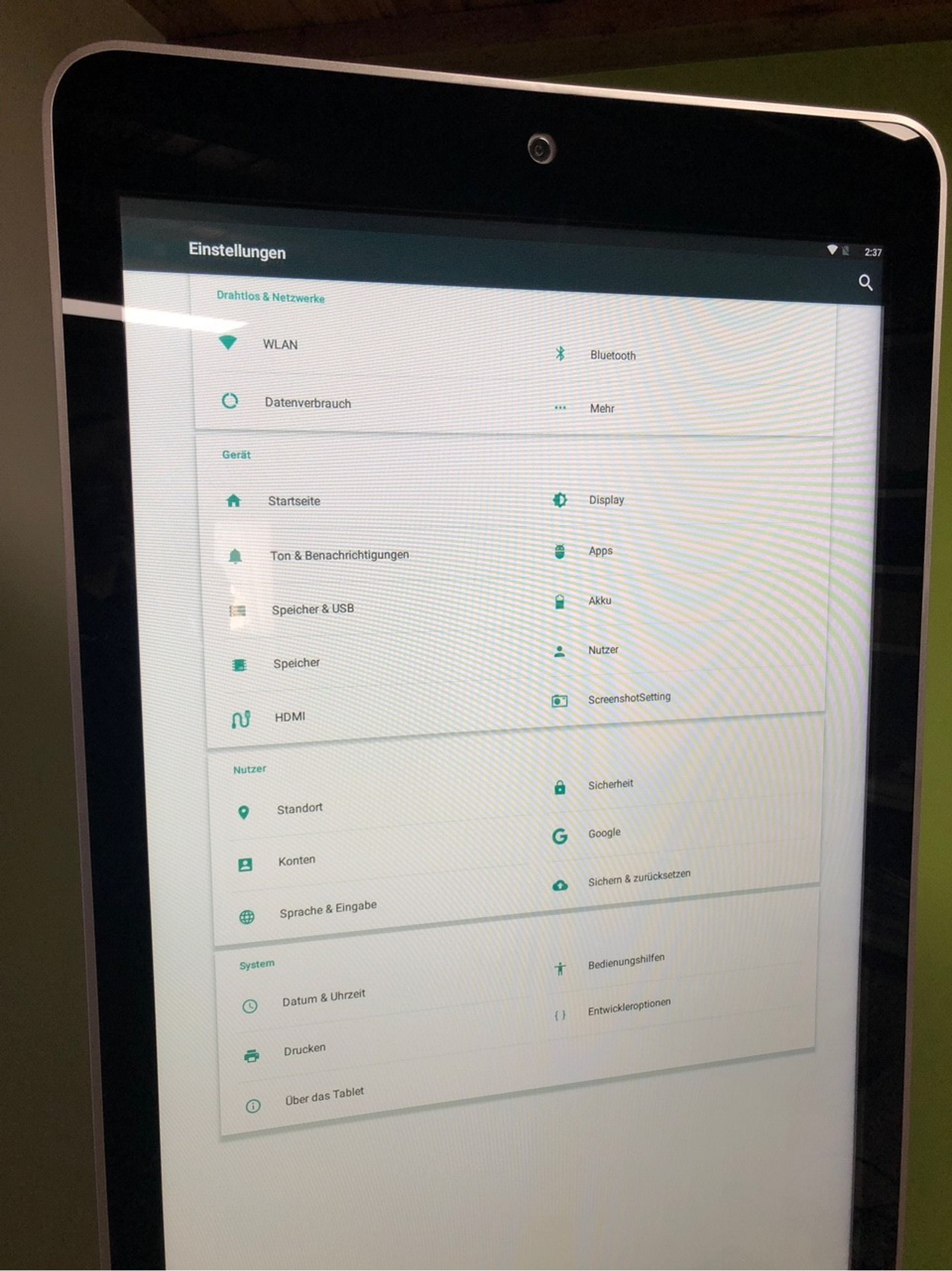 unsere Setupeinstellungsseite auf dem Terminal in die Android Einstellungen: