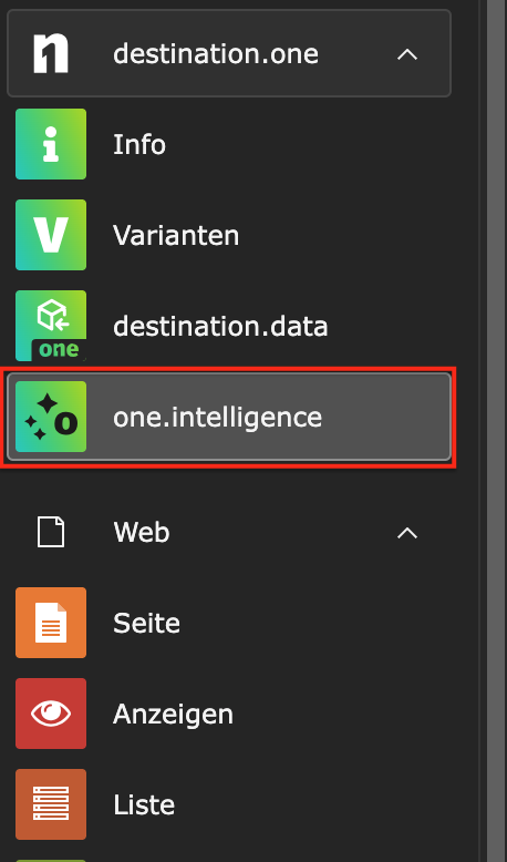 Seit dem Release 2025/11 gibt es einen neuen Tab "one.intelligence" innerhalb der TYPO3 Instanzen: