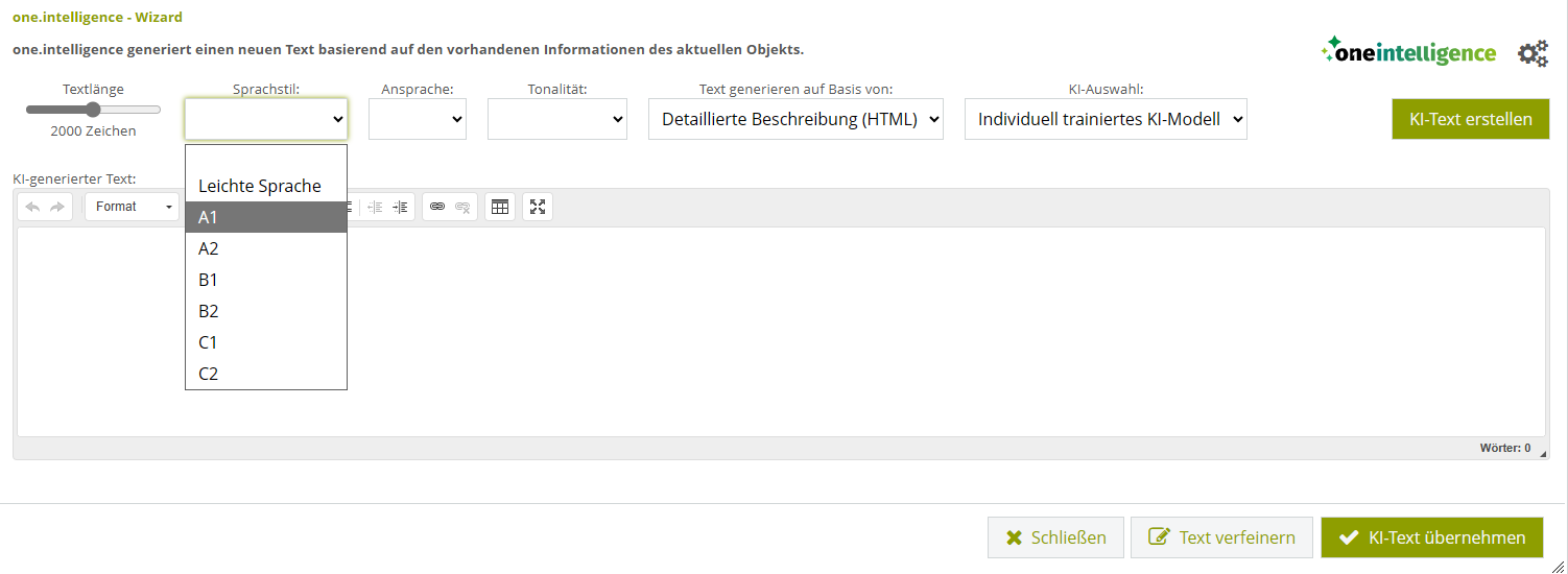 Der Prompt für die Sprachstile A1, A2, B1, B2, C1, C2, sowie Leichte Sprache wurde optimiert und sollte nun bessere Ergebisse liefern.