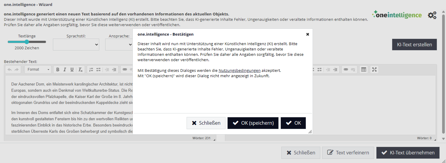 Auch muss bestätigt werden, dass einem der Nutzen der KI bewusst ist, wenn man diese nutzt in einem Popup.