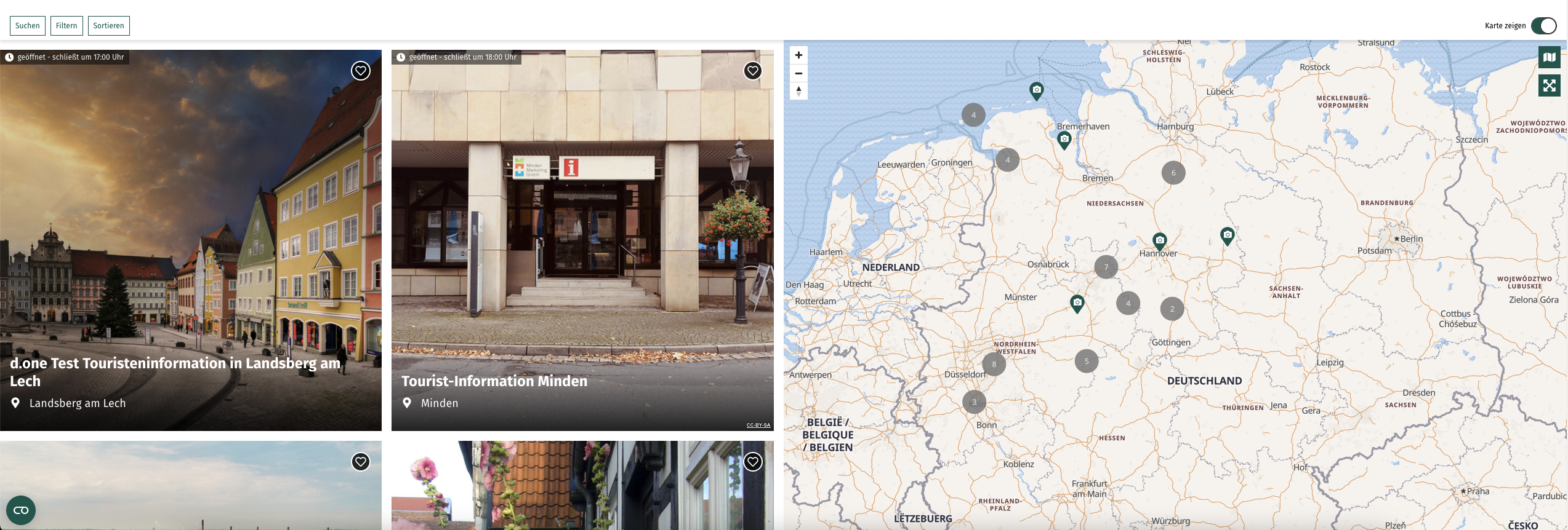 Das Modul besteht - wie der Name schon sagt - aus einer Galerie und einer Kartendarstellung für die hinterlegten Datensätze. Welche Filter und Bausteine genau gezeigt werden, lässt sich im Backend konfigurieren.