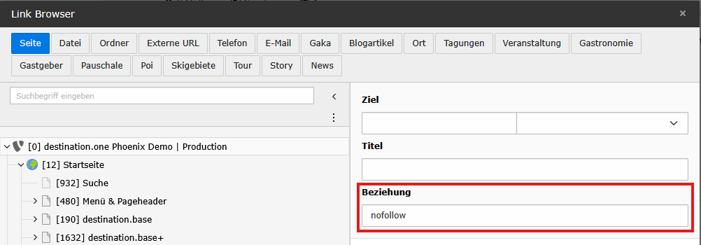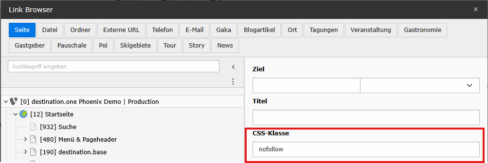 Ist der Titel für Suchmaschinen nicht gepflegt, wird stattdessen der Seitentitel verwendet. Der Titel für Suchmaschinen wird ebenfalls zum Titel im Browser Tab.