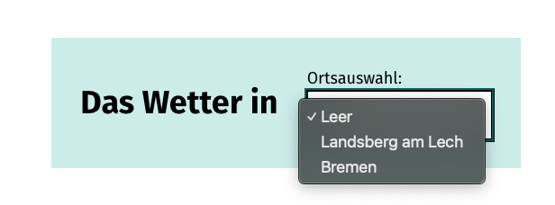 - Im Orte-Dropdown wurde bisher "Bitte wählen Sie einen Ort" angezeigt. Um hier eine direkte Ansprache zu umgehen, wurde es in "Ortsauswahl" umformuliert.