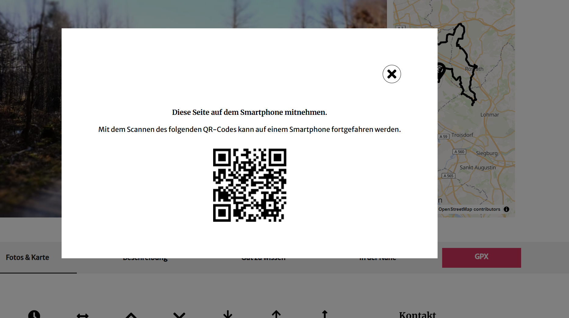 Auf Kite-Geräten öffnet der GPX-Download-Button nun einen QR-Code, über den Nutzer:innen die aktuelle Seite bequem auf ihr Smartphone übertragen können.