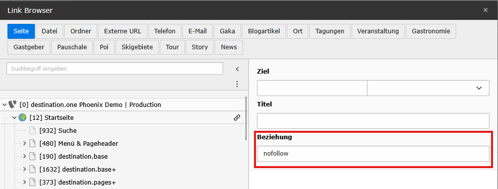 5.13 Link-Browser - SEO: Neues Linkattribut "nofollow" bei Textverlinkungen