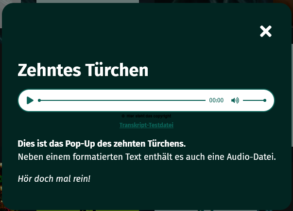 Im destination.adventcalendar wurde die Farbe der Copyright-Angabe bei Audio-Elementen angepasst. Dadurch ist das Copyright nun besser sichtbar.