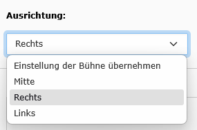 Für das Element destination.base Badge wurden Ausrichtungsoptionen hinzugefügt, analog den Optionen für die Überschrift. Es kann jetzt zwischen „Einstellung der Bühne übernehmen“, „Mitte“, „Links“ und „Rechts“ gewählt werden.