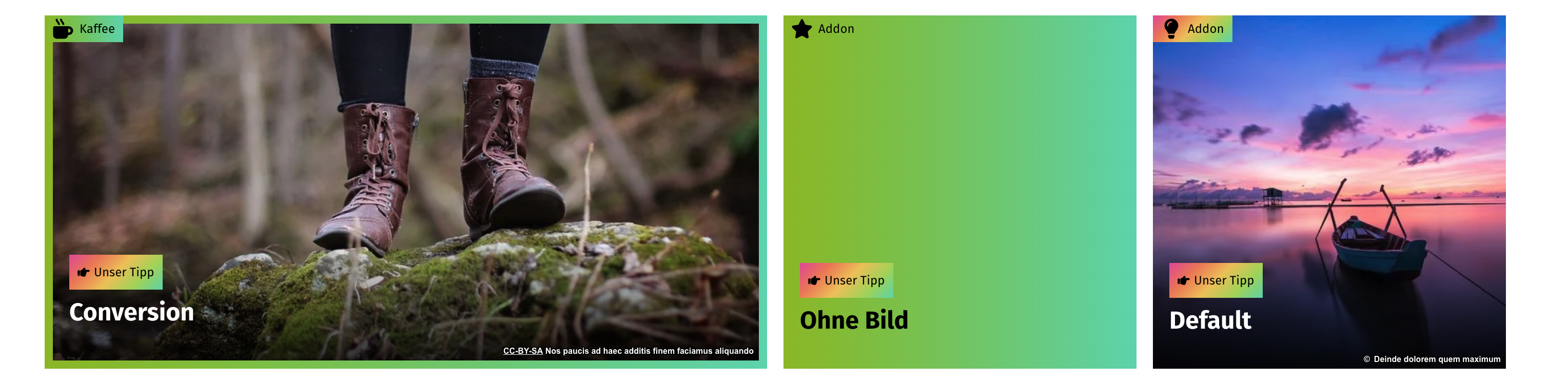 💡Hinweis: Addons auf Kacheln ohne Bild werden – im Gegensatz zu „Unser Tipp“ – ohne Hintergrundfarbe angezeigt.