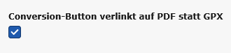 Mit dem neuesten Update könnt ihr auf den Touren-Detailseiten des Plugins den Conversionbutton der Navigationsleiste so einstellen, dass bei Klick das PDF erzeugt wird, statt der standardmäßigen GPX-Datei. Die Detailseite bleibt dabei unverändert, während sich die Navigation abhängig von eurer Backend-Einstellung anpasst.