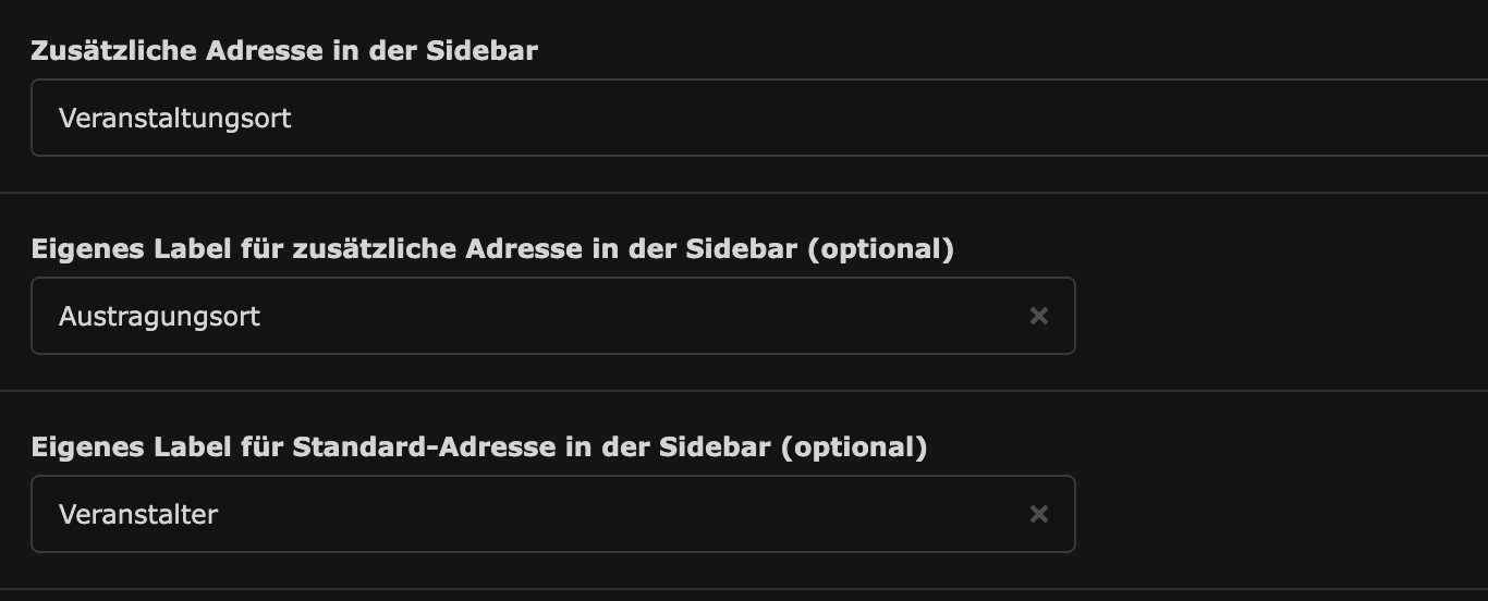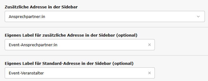 Seit diesem Release ist es möglich, die Label für die Adressen in der Sidebar pro Datentyp individuell zu pflegen. Die Datentypen haben hier teils unterschiedliches Handling, deswegen siehe dazu: