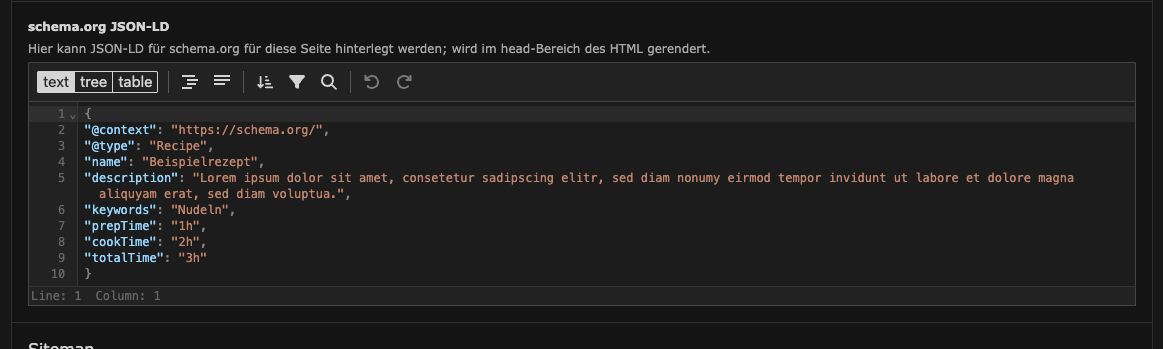 4.8 Seiteneigenschaften: Feld für schema.org im JSON-LD-Format