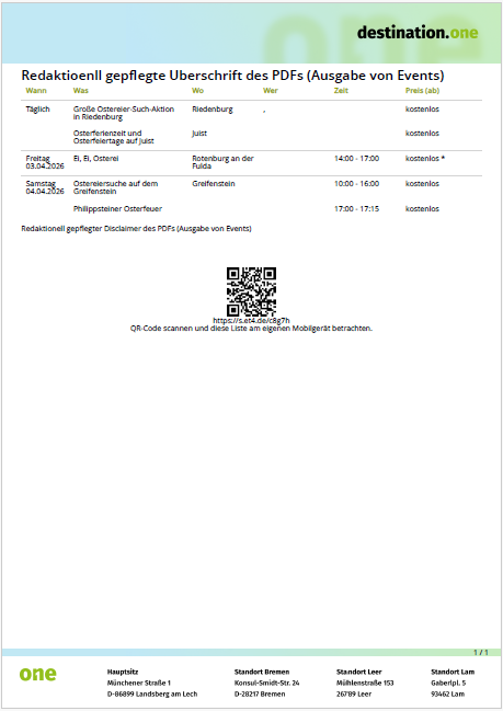 Aus einer Event-Ergebnisliste erzeugtes PDF - mit redaktionell gepflegtem Titel und Disclaimer