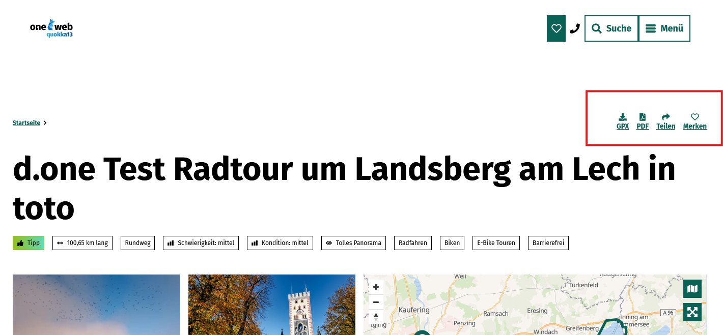 💡Unabhängig von der Einstellung in "Destiantion.Data Details: Tour" bleibt die Möglichkeit zur Erstellung der PDF- und GPX-Datei in der Zeile der Bread-Crumb erhalten.